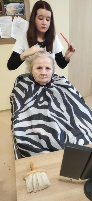 Hned další den nás navštívili kadeřníci ze Střední školy Bohumín. Za podpory paní mistrové ostříhali některé z našich klientek. Na fotkách se můžete přesvědčit, jak moc jim to slušelo. Návštěva kadeřníků ze Střední školy Bohumín je u nás v domově vždy vítaná.