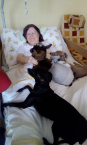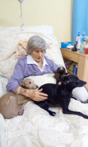 Na únorovou canisterapii v domově pro seniory za klienty přišly staré známé psí terapeutky a jeden speciální host – zakrslá kozička Máša. K pomazlení byla celá smečka.